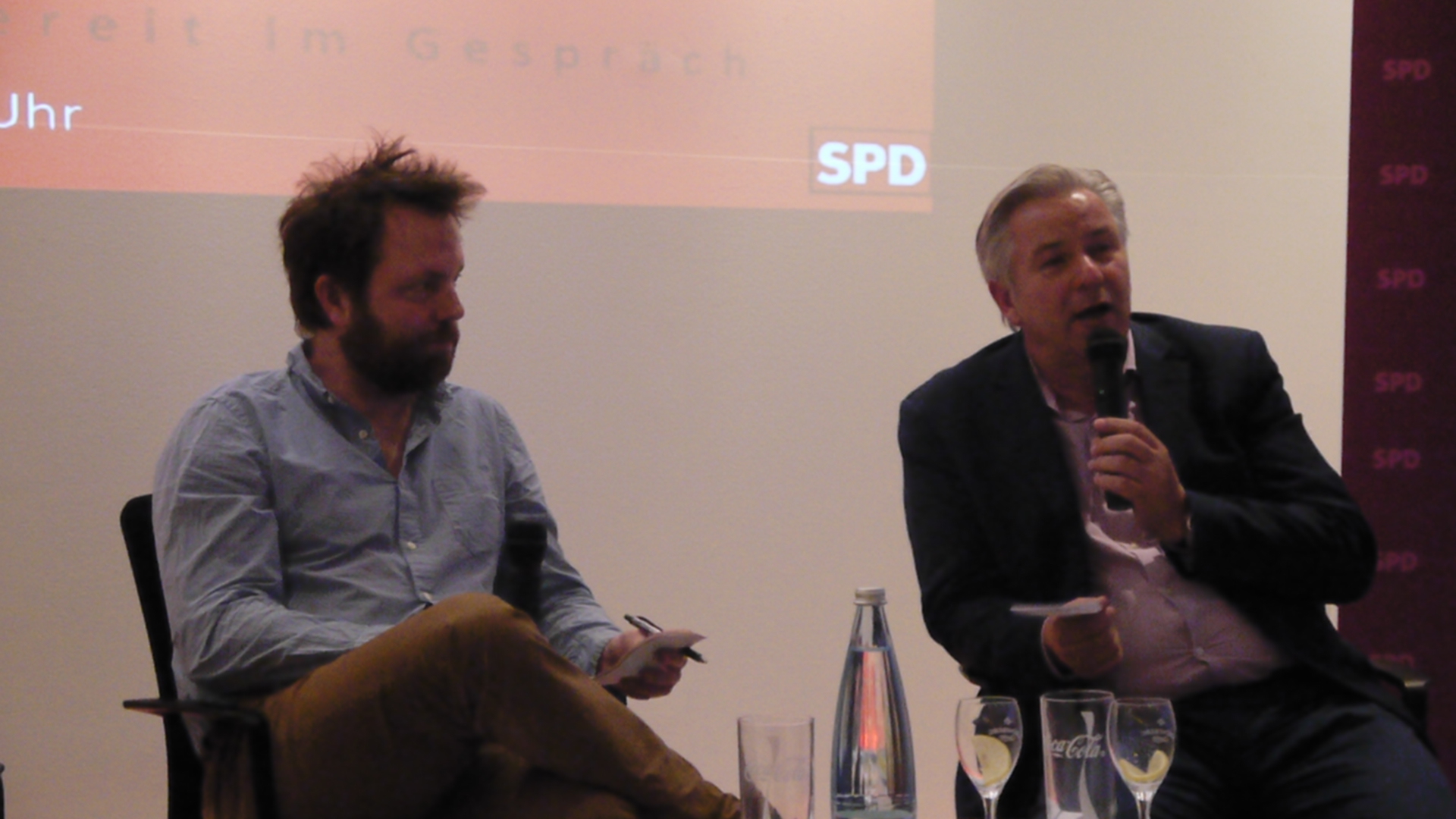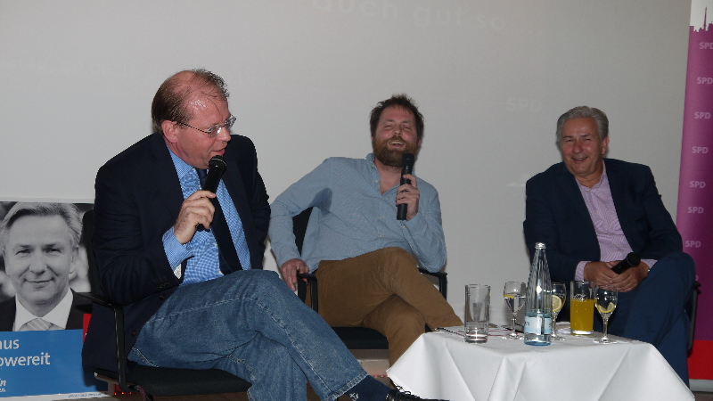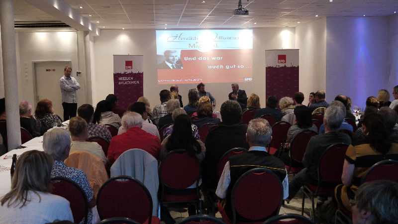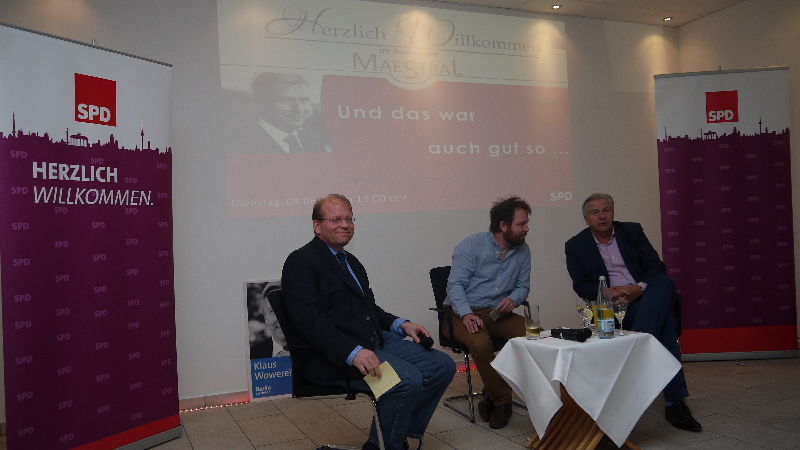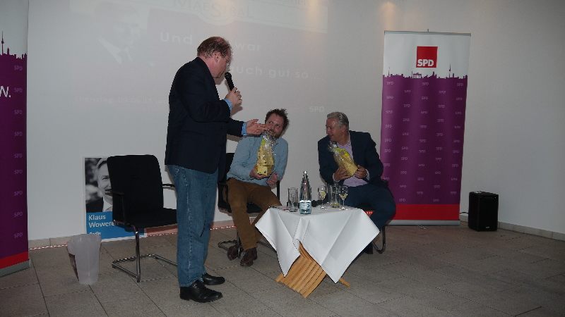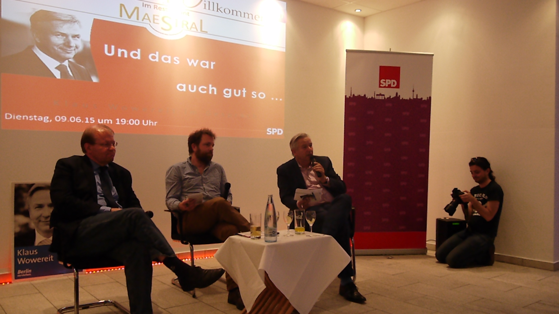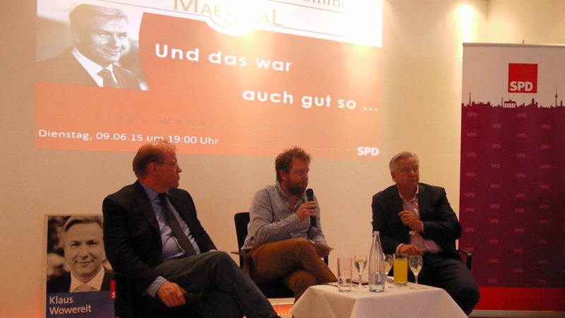 SPD Karge Wowereit Maestral   0215  P Wo 800Der ehemalige Regierende Bürgermeister von Berlin, Herr Klaus Wowereit war auf Einladung des Abgeordneten Thorsten Karge in Reinickendorf im Restaurant Maestral -gg.v.Rathaus- und berichtete über seine Amtszeit und stellte sich den Fragen der Bürger. Mark Diening (Journalist) hatte die Moderation.