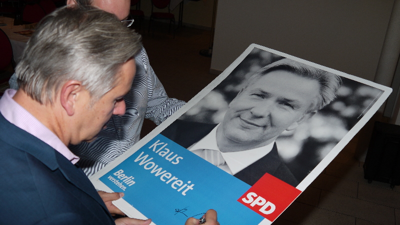 Herr Wowereit: „Mit der Afd, also das würde wohl einen riesen Aufstand in der SPD geben und das kann man ausschließen und das passiert garantiert nicht und hoffentlich lösen sie sich endlich mal auf und das wäre sehr sinnvoll. … Berlin muss ein Wahlergebnis haben, dass ohne SPD nichts geht … und ganz wichtig ist es für eine Partei wie die SPD, nicht auf die anderen zu schielen sondern auf die eigene Stärke zu setzen und wir haben mit Michael Müller einen super Regierenden Bürgermeister und in den Umfragen ist die SPD wieder vorn und das ist die gute Bases … die Chance, dass die SPD bei den Berliner Wahlen für das Abgeordnetenhaus im nächsten Jahr wieder den Regierungsauftrag erhält sind sehr, sehr groß und dafür wird die SPD ackern. … auf der Bundesebene ist es alles etwas schwieriger – aber wenn man sich objektiv die Leistungen der SPD Minister betrachtet, dann schneidet die SPD sehr gut ab aber „Mutti“ ist immer noch sehr populär, darf man nicht verkennen und schöne Bilder mit Gamsbart, das wirkt bei vielen schon und dann ist da nicht mehr viel von Frank Walter Steinmeier zu sehen und das Feld beackert dann die Bundeskanzlerin alleine und das ist eine Schwierigkeit, die nicht so leicht zu überwinden ist und da bleibt der SPD nichts weiter übrig als weiter gute Politik zu machen glaubwürdig und überzeugend für die sozialdemokratischen Ziele einzutreten.