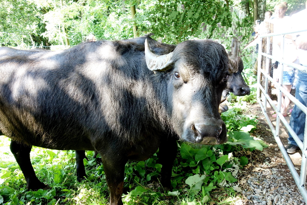 Hermsdorf brachte. Baustadtrat Martin Lambert, Sabine Toepfer-Kataw, Staatssekretärin für Verbraucherschutz, die diese geniale Umsetzung des Naturschutzes lobte, Bezirksbürgermeister Frank Balzer und Torsten Hauschild öffneten das Tor zum Gatter, nachdem die zahlreich anwesenden Kita- und Schülergruppen lautstark „Büffel raus“ skandiert hatten. Die 9 Büffel eroberten im Galopp ihren neuen Lebensraum und flüchteten vor den neugierigen Zuschauermassen in die hinterste Ecke ihres weitläufigen, mit Elektrozaun abgesicherten Geheges.