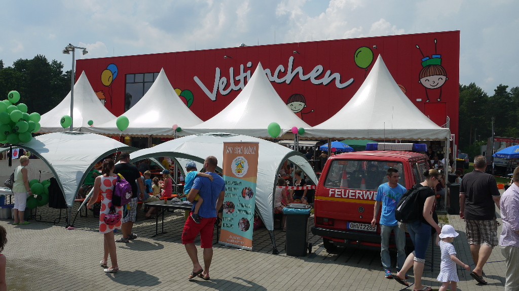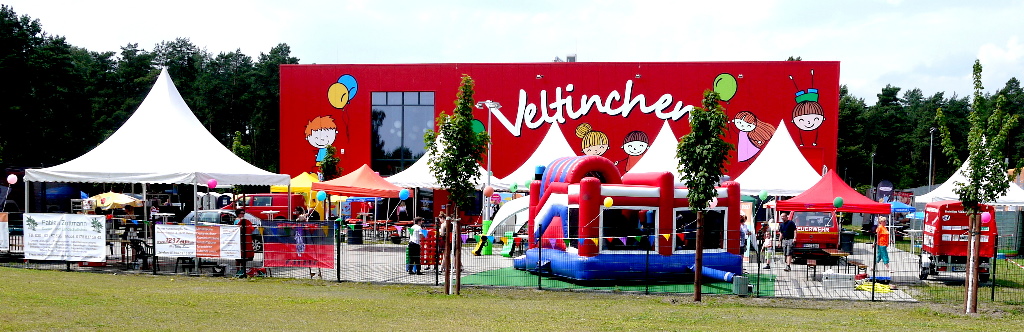 Die um 16 Uhr gezogenen 3 Gewinner der Hauptpreise sind: Spielhaus mit Rutsche hat gewonnen ~ Daniel S. / Spielturm ~ Nadin K. / Trampolin ~ Verena L.Aber nicht nur auf dem Fest vor dem „Veltinchen“ war Power – nein auch innen, auf den 2.000 qm mit seinen 300 Sitzplätzen, wurde von den Indoorspielgeräten regen Gebrauch gemacht.