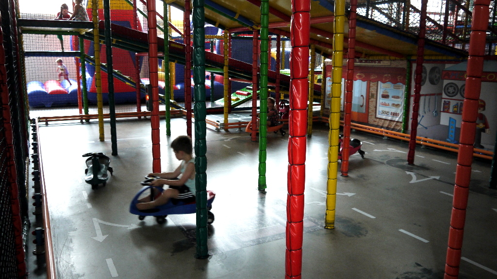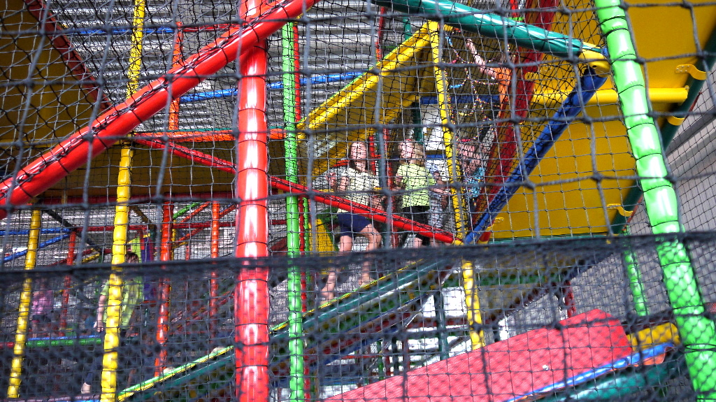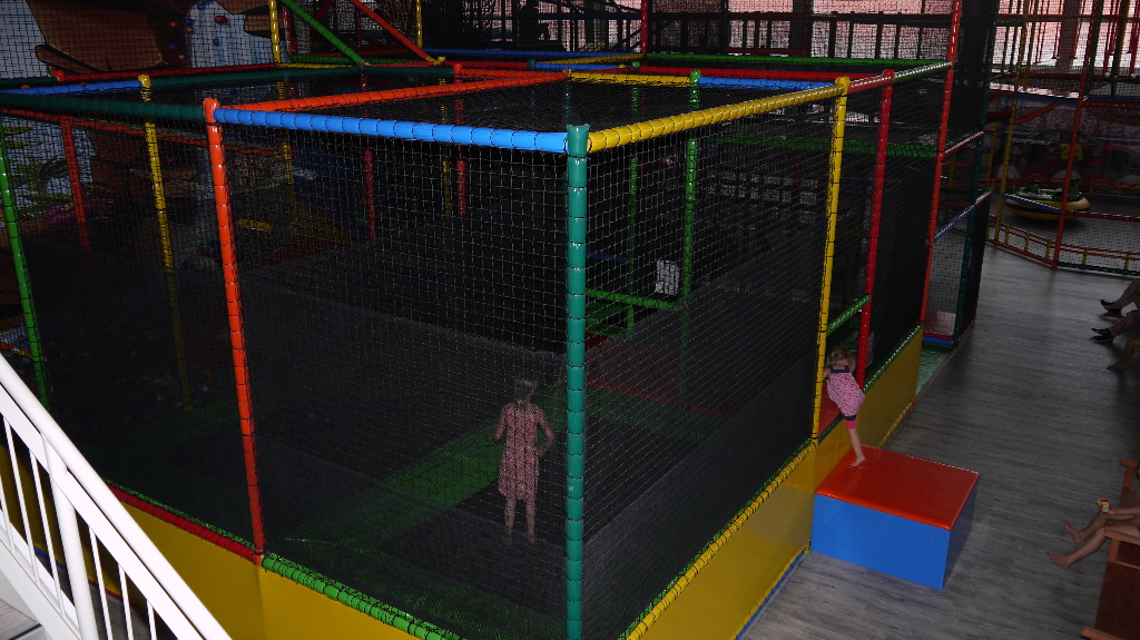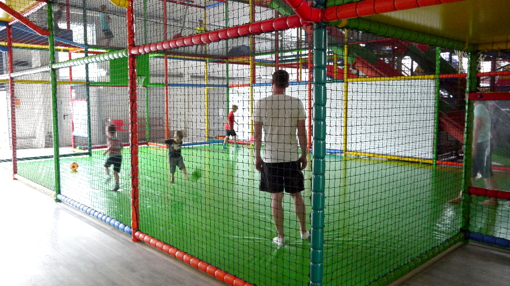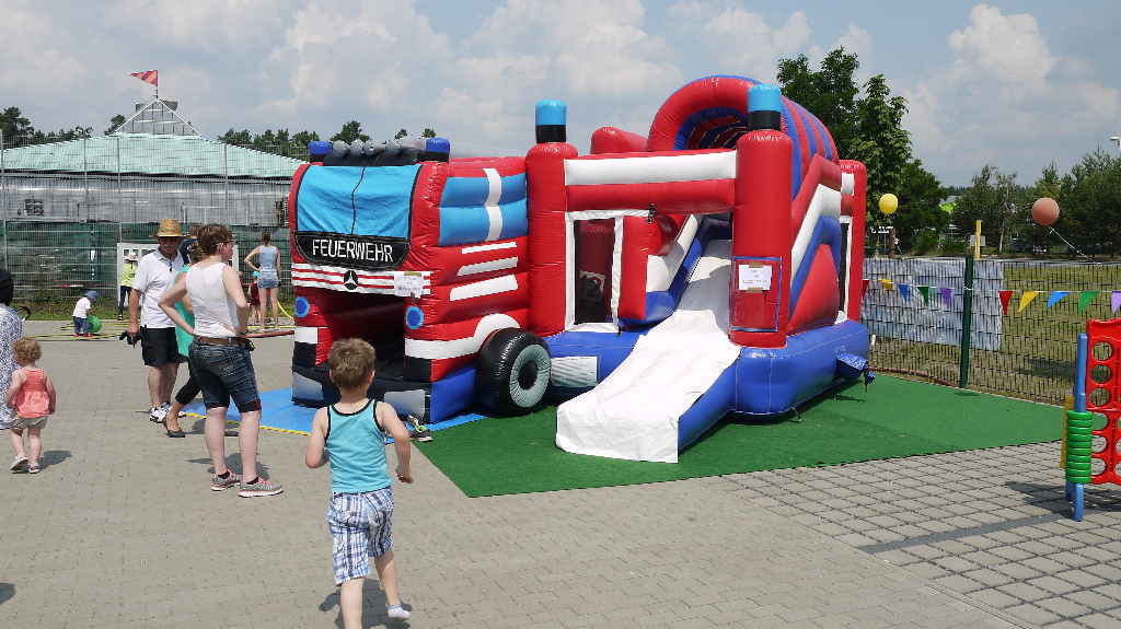 Neben den vielseitigen Klettermöglichkeiten gibt es u. a. Rutschen – Airhockey – Fußballkicker – einen Fahrradparkour für Groß und Klein – Hüpfburgen für kleine und große Kinder – Trampoline – Ballkanonen.