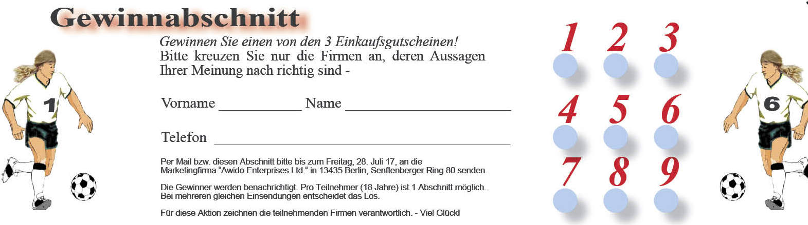 Viel Spannung und tolle Spiele, das wünscht Ihnen Ihre KiEZBLATT-Redaktion. Abgabeschluss ist am Freitag, 28. Juli 2017. (Alle Angaben ohne Gewähr)