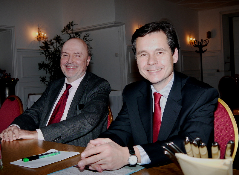 Der Kandidat (li) für das Berliner Abgeordnetenhaus, Herr Jörg Stroedter, amtierender stellvertretender Fraktionsvorsitzender der SPD im Roten Rathaus,          sowie der Kandidat (re) für den Bürgermeister im Reinickendorfer Rathaus, Herr Uwe Brockhausen, amtierender Reinickendorfer Stadtrat für Wirtschaft, Gesundheit und Bürgerdienste hatten zur Pressekonferenz geladen.